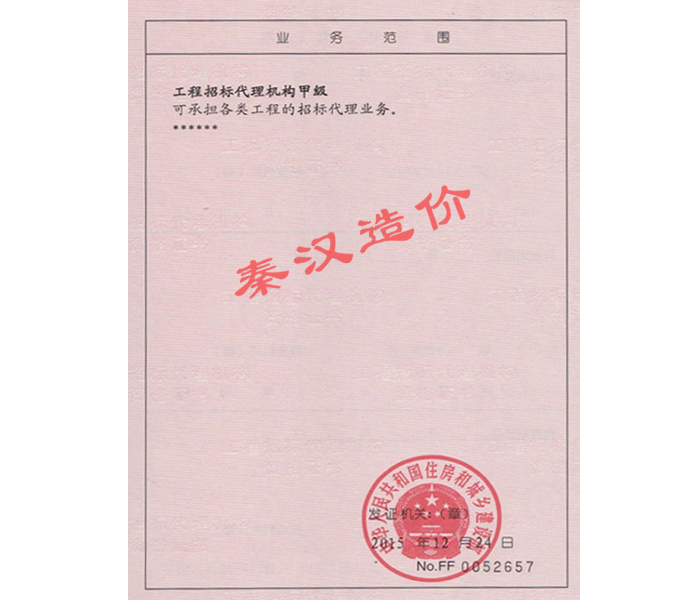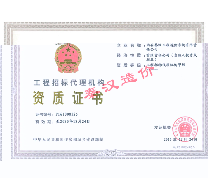 工程招标代理机构甲级资格证书